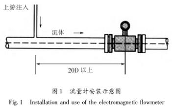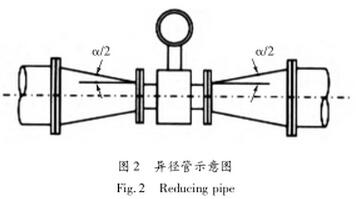 流量計安裝位置的上下游直管段一般遵循前十后五原則。要求前直管段不小于10D,后直管段不小于5D。如果在上游管段注入其他化學物質(zhì),則容易引起導電。流量計應盡可能遠離主進口至少20D(如圖1所示);如果污水流量計的上下游使用減壓管,則減壓管的中心錐角α應小于15°